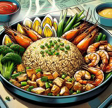 Arroz salteado al estilo chaufa con pollo, gamba, huevo y kimchi fresco, mezclado con un toque de nuestro kinchy fresco para un sabor explosivo.