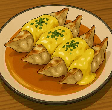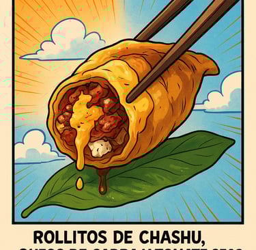 de chashu, queso de cabra y tomate seco, bañados en mayonesa de kimchi y ponzu. Crujientes por fuera, cremosos por dentro… ¡un verdadero jutsu que hará que tu chakra culinario se eleve al máximo!