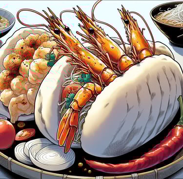 Pan al vapor con gamba tempura y un toque picante de salsa spicy.
