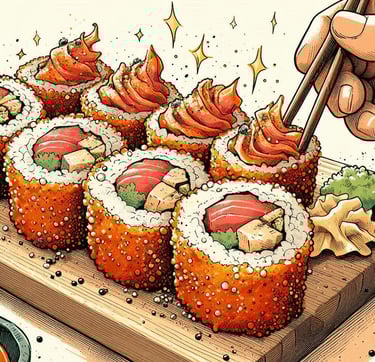 Atún picante envuelto en rollo de sushi, coronado con láminas de atún, mayonesa spicy y un toque de shichimi togarashi para una explosión de sabor.